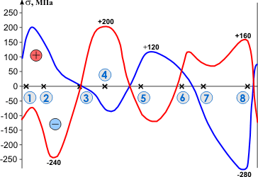 Here it is important to point out the delusiveness in the existing approaches of various inspection means developers at assessment of residual stress distribution in welded joints. As a rule, according to the results of the inspection by various methods (strain measurement and interferometry with metal drilling, X-ray, UT, Barkhausen effect, the magnetic anisotropy method, etc.), the level of residual stresses on welds does not exceed the yield strength σy, which, as a rule, does not correspond to the actual distribution of stresses.