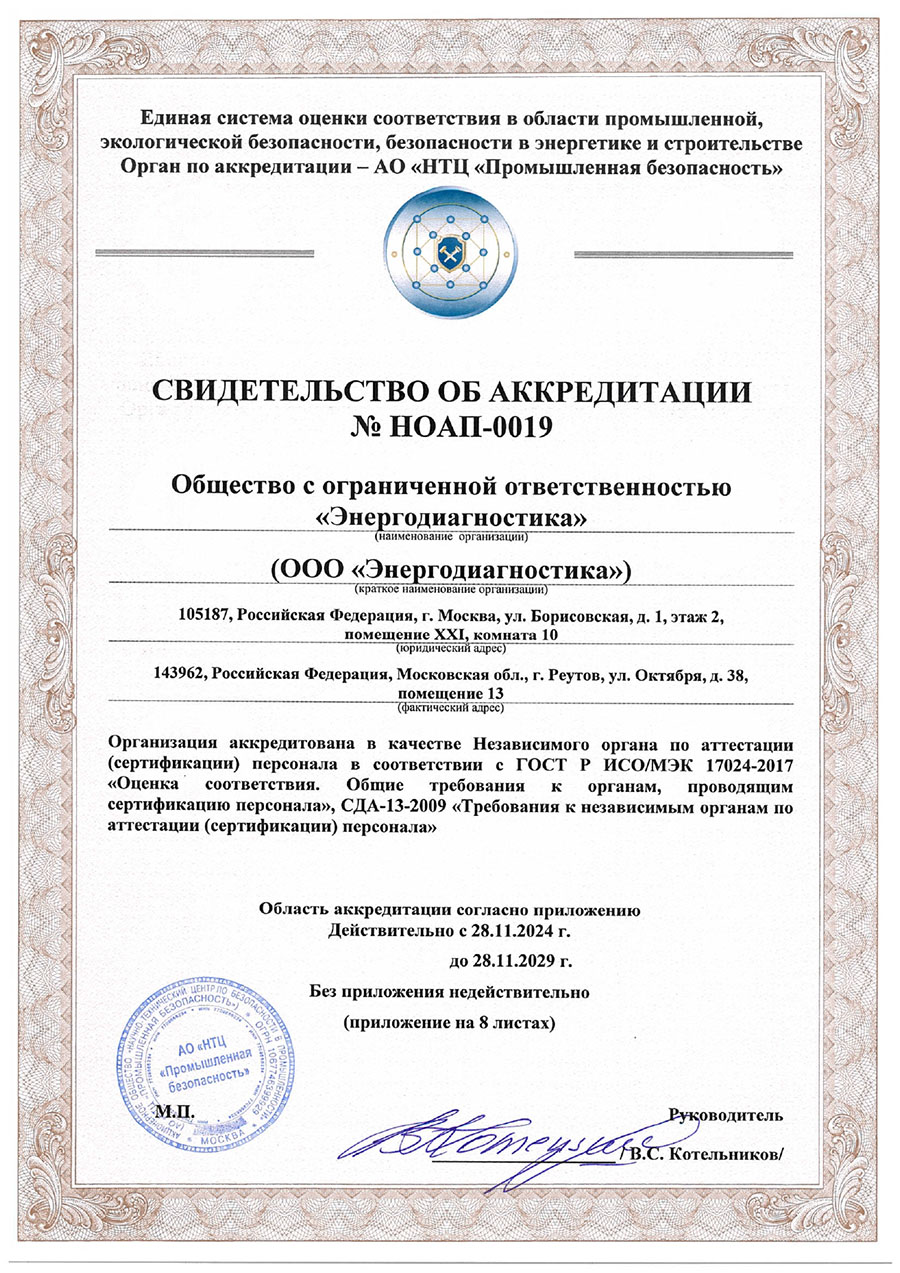 Accreditation Certificate No.NOAP-0019 from November 28, 2024